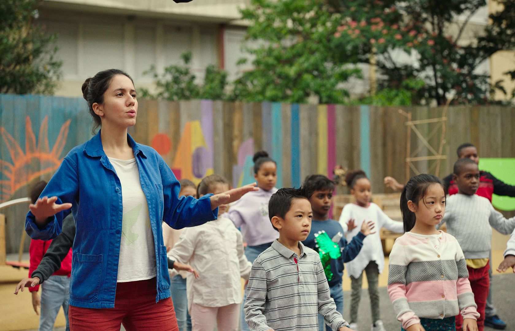 Rien ne va plus pour la directrice de l’école Jacques Prévert, Zahia (Rachida Brakni), qui se heurte à une désertion massive de ses élèves et qui a du mal à rassurer concernant la mixité des classes et des ethnies, sachant l’arrivée de nouveaux habitants. Tout son combat la mène à croiser un certain nombre de profils, engagés sur le fil, afin de compléter son équipe et de fidéliser le peu d’enfants restants. Le visage de l’école publique prend donc un coup supplémentaire, là où il faut pour justement qu’on entende et qu’on remarque ses plaies, grandes ouvertes. Cela passe par des budgets insuffisants, mais dont on saura pallier le manque de matériel avec des cours improvisés dans un parc, au plus près de la nature, quand bien même on puisse la confiner entre quatre dalles de béton. C’est ce qui constituera d’ailleurs le long fil rouge du récit, faisant planer l’ombre menaçante de la gentrification, tandis que les locaux y voient une opportunité de se redresser socialement.