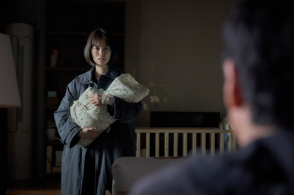« Un ronflement en appelle un autre. Le film s’ouvre ainsi, dans la pénombre d’une chambre, où le somnambulisme du mari (Sun-kyun Lee) devient inquiétant. Sa femme (Yu-mi Jung), qui n’est pas loin d’accoucher de leur enfant, devra alors gérer les tourments des nuits à venir, car son mariage ne tient qu’à un fil. »